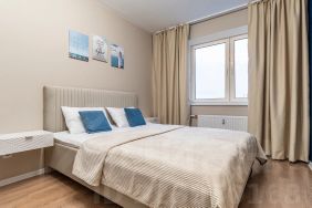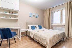 Квартира с дизайнерским ремонтом, полностью готова для комфортного проживания. Просторная кухня площадью 11 кв. м оснащена необходимой техникой: холодильником, посудомоечной машиной и стиральной машиной с функцией сушки. В комнате и на кухне есть мебель. Санузел совмещенный, с ванной. Из окон открывается вид во двор, поэтому в квартире тихо и спокойно.