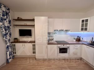 Просторная кухня-гостиная, 2 комнаты и раздельный санузел. Квартира укомплектована всей необходимой техникой: большой встроенный холодильник, посудомоечная машина, духовой шкаф, микроволновая печь и пр. Стиральная машина с функцией сушки.