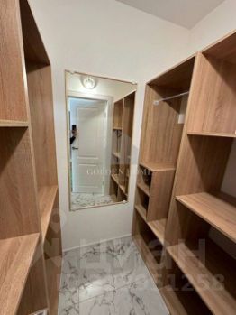 Имеется отдельная гардеробная с кучей полок и большим зеркалом по середине
