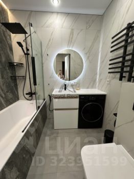 Совмещённый санузел выполнен в современном стиле и оснащён качественной сантехникой.