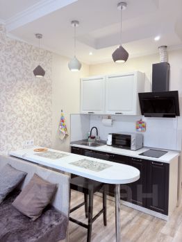 В квартире выполнен качественный евроремонт. Пространство студии грамотно зонировано — есть удобная зона отдыха и комфортная обустроенная кухня с необходимой мебелью и техникой: кондиционер, холодильник и стиральная машина., микроволновая печь . В ванной комнате установлена душ . Широкая лоджия станет отличным местом для утреннего кофе или вечернего отдыха.