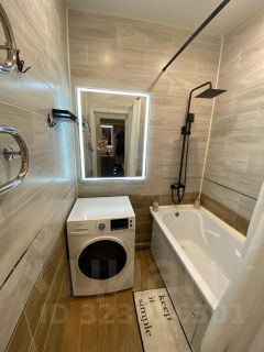 Санузел в квартире раздельный, ванна, большое зеркало с подсветкой, стиральная машина, кафель; в прихожей-вешалка.