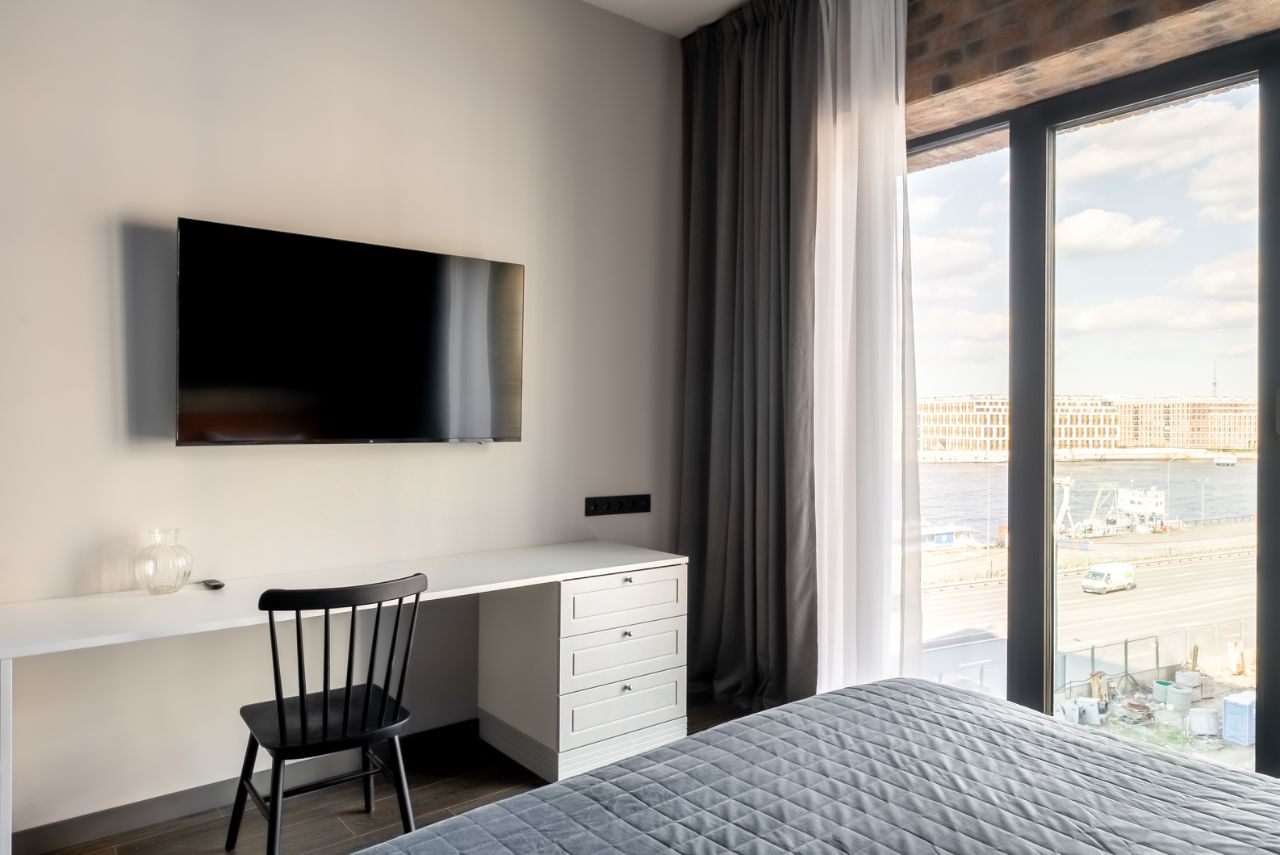 Апартамент-студия с панорамными окнами и видом на Неву: