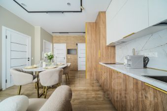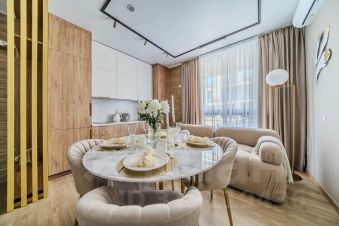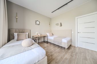 К вашим услугам 2 уютные спальни, шторы блекаут, удобнейшие матрасы для безмятежного снапросторная кухня-гостиная,