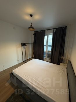 В квартире отдельная спальня с балконом (все лишнее вывезем), кровать двуспальная с наматрасником, слева прикроватная тумбочка, справа подвесная тумба, напротив вешалка для вещей.