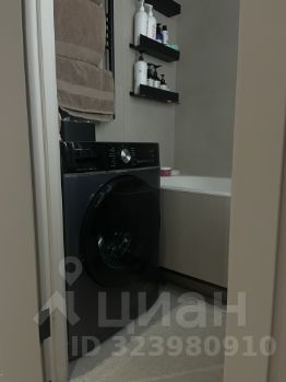 ванная комната с дизайнерской отделкой из камня, оснащена стиральной машиной и сушилкой;