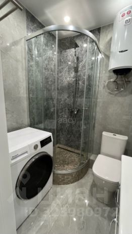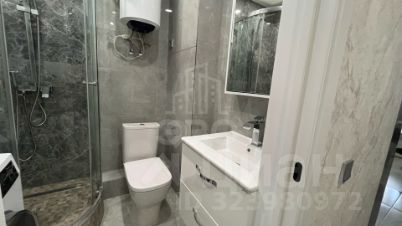 В санузле стильная плитка под мрамор, установлена качественная душевая кабина и водоногреватель, выключение горячей воды не страшны. Есть просторный застекленный балкон, нестандартной формы.