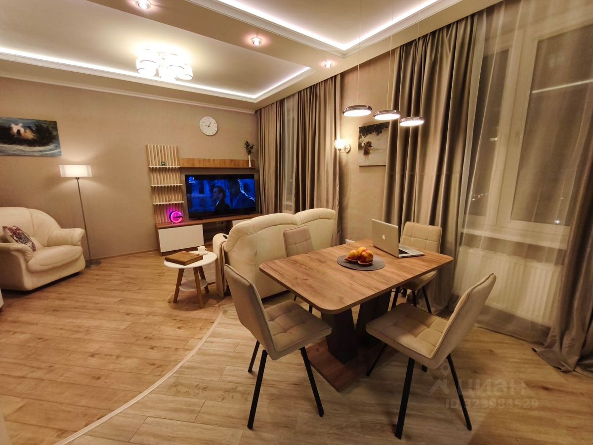 Сдается просторная трехкомнатная квартира с евроремонтом в доме 2014 года постройки. Общая площадь квартиры составляет 83,2 кв. м, кухня —гостинная 25 кв. м. Квартира находится на 9-м этаже 20-этажного дома. Высокие потолки — 2,85 метра — добавляют ощущение простора и света. Окна выходят на улицу, что обеспечивает приятное освещение в течение всего дня.