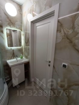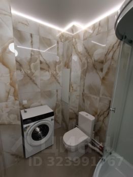 Санузел выполнен в премиальном стиле: индийская мраморная плитка, подсветка, качественная сантехника.