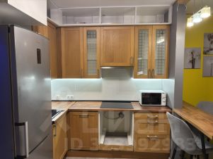 - мебель: большой встроенный шкаф, кухня, ванная, кровать, а также большой рабочий стол возле окна.