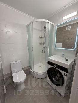 В квартире есть всё необходимое для комфортного проживания: современная мебель на кухне и в комнате, а также вся необходимая бытовая техника — холодильник, индукционная электрическая плита, микроволновка, встроенный фильтр для воды, посудомоечная и стиральная машины. Удобная планировка студии включает совмещённый санузел с душевой кабиной.