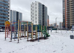 Дом расположен центральной части Мурино. Имеется внутренний двор, со своей спортивной и детской площадкой. Вокруг дома есть много парковочных зон, дорога дублёр. Прямо в самом доме есть Пятёрочка и Дикси. В пешей доступности находится вся необходимая инфраструктура: магазины, аптеки, школы, детские сады и поликлиника. Вокруг дома есть несколько скверов для прогулки.