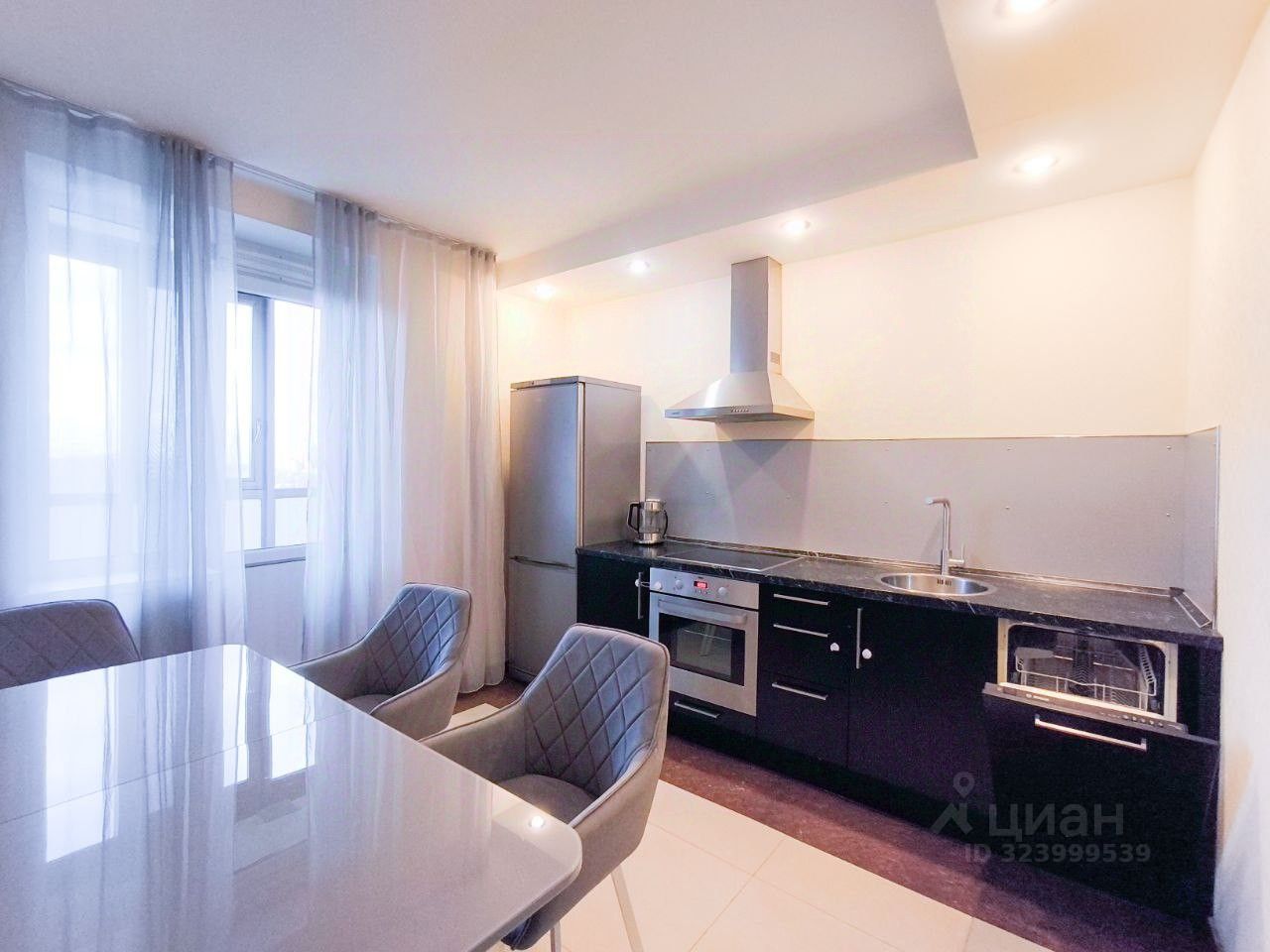 В квартире выполнен качественный ремонт. В наличии вся необходимая мебель и бытовая техника, в том числе посудомоечная машина. Квартира достаточно большой площади 76 кв.м., из которых 12 кв.м. занимает кухня, 22 кв.м. гостиная, а также 18 кв.м. - спальня с удобной двуспальной кроватью, раздельный санузел с чугунной ванной и 2 большие застеклённые лоджии (из кухни и из спальни), гардеробная. Комнаты очень изолированы друг от друга за счет планировки и толстых несущих стен из кирпича.