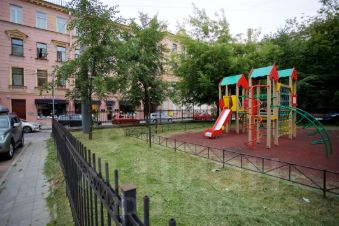 Красивый вид из окон на Матвеевский сад, очень удобное местоположение (5 мин. от м.Петроградская + высокие потолки и кирпичный дом.