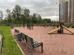 Во дворе дома детская и тренажерная площадки, концепция - двор без машин (удобная парковка рядом), широкая светлая парадная, колясочная, скоростные лифты Отис, круглосуточное видеонаблюдение, консъерж.