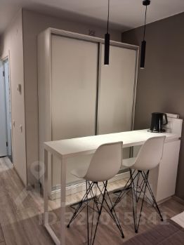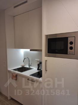 Студия полностью мебелирована: встроенные шкафы, комод, место для работы, две кровати, обеденная зона, сейф, зеркало, вешалки, утюг, сушилка, гладильная доска, центральный кондиционер, электронный замок, стиральная машина, фен.