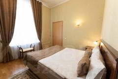 Высокие потолки, большие окна с видом на тихий внутренний дворик делают пространство светлым и просторным. Антикварная мебель из древесины грушевого дерева, подвесные люстры, старинный трельяж, паркет из красного дерева насыщают апартаменты атмосферой покоя и расслабленности. Всё дышит традициями классической петербургской квартиры XIX века. Первая комната - уютная гостиная с раскладным двуспальным диваном и вторая комната - отдельная камерная спальная с двуспальной кроватью. В каждой комнате есть вместительный гардероб. В Вашем распоряжении - ванная комната с душем, чайный набор, фен, косметическая продукция, шапочка для душа, тапочки. Апартаменты оборудованы кондиционером, доступен бесплатный wi-fi.