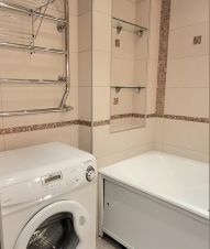 В квартире выполнен качественный ремонт и квартира оснащена всем необходимым для комфортного проживания: телевизор, холодильник, стиральная машина, микроволновка, посудомойка, кондиционер, бойлер, пылесос, чайник.