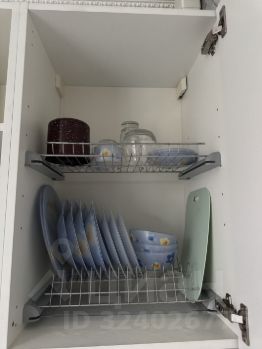 Есть все необходимое для жизни: плита, микроволновая печь, кофемашина, чайник, стиральная машина, пылесос, утюг, сушильная доска, гладильная доска, телевизор, посуда, одеяло и подушки. Спальные места-двуспальная кровать и диван. Окна во двор.