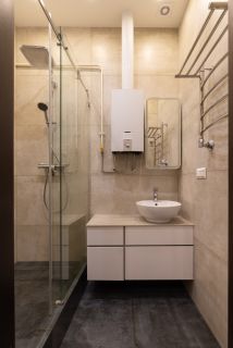 Керамогранит; 4-х зонный теплый пол; техника Siemens/Liebherr; смесители и фурнитура Hansgrohe.