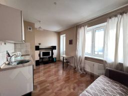 Квартира меблирована и оснащена всей необходимой бытовой техникой: здесь есть удобный диван, вместительный шкаф, стиральная машина, полностью оборудованный кухонный гарнитур и всё, что нужно для комфортной повседневной жизни.