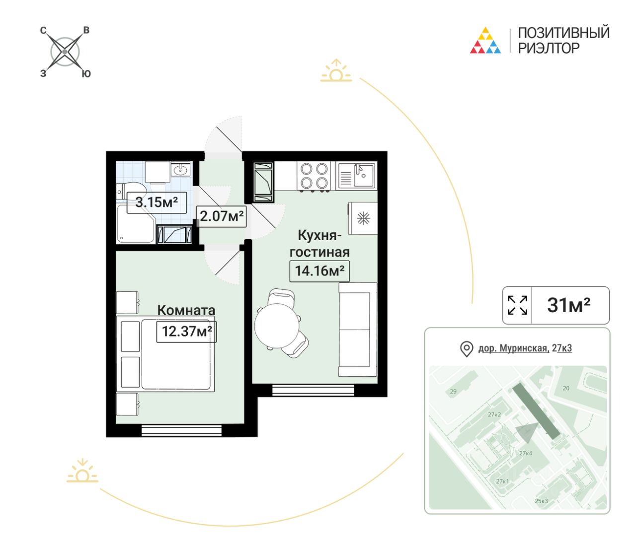 Транспортная доступность: рядом с домом ходит 3 автобуса, 1 маршрутка. За 15-20 минут можно доехать до метро "Академическая", "Девяткино", по пр. Культуры (Просвет) или во Всеволожск.