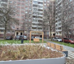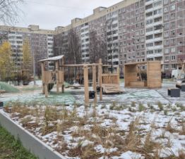 Во дворе детская площадка. Всегда можно найти место для парковки машины. Развитая инфраструктура: торговые комплексы, Ледовый дворец, магазины, школы, детские садики, банки, поликлиники в шаговой доступности. 20 минут транспортом до центра на машине или на метро.