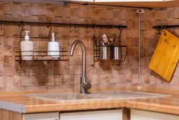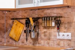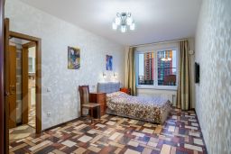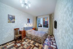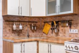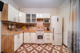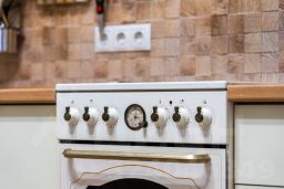 Техника: электрическая плита, духовой шкаф, микроволновая печь, холодильник, электрочайник, стиральная машина, 2 телевизора.