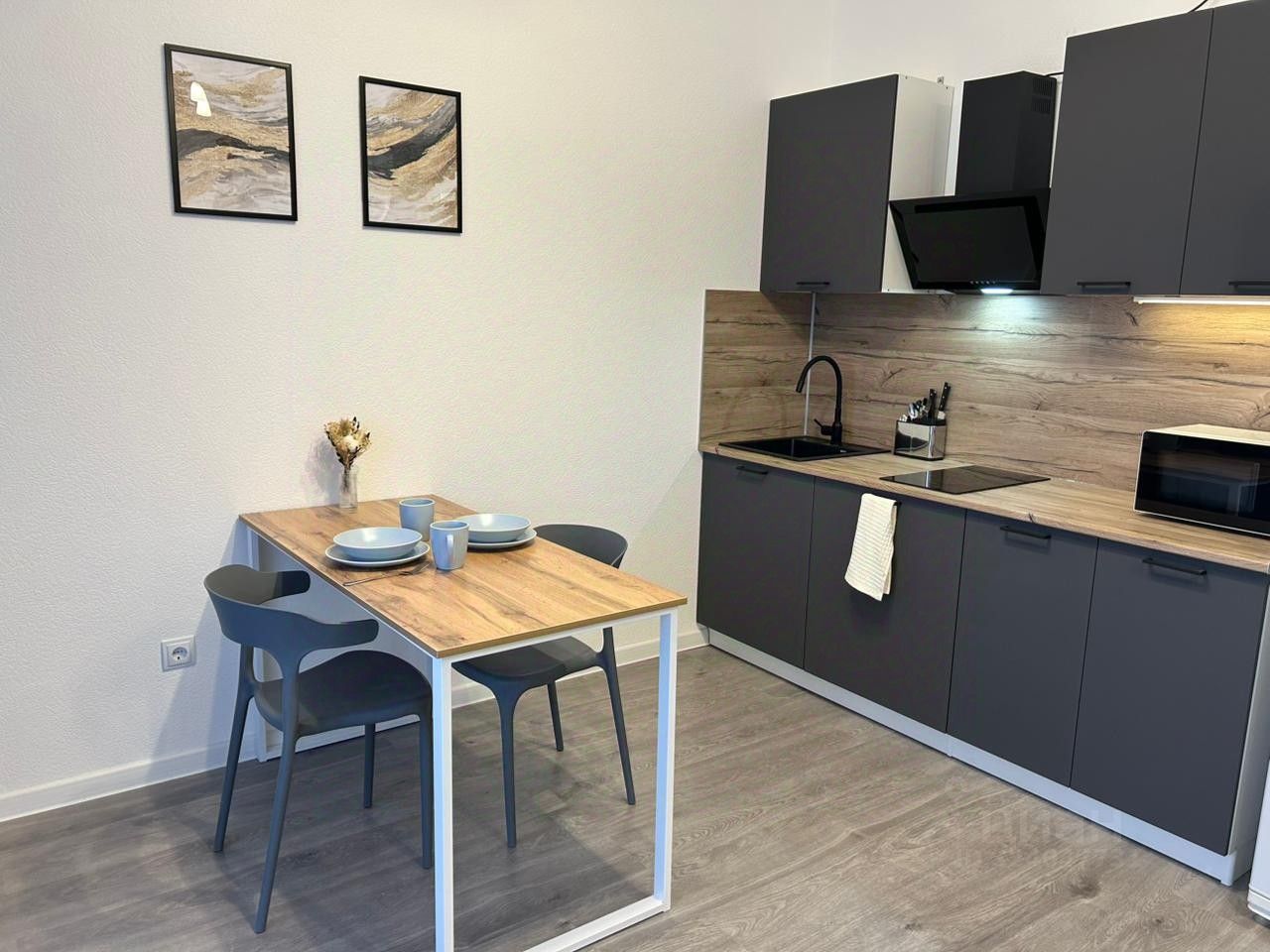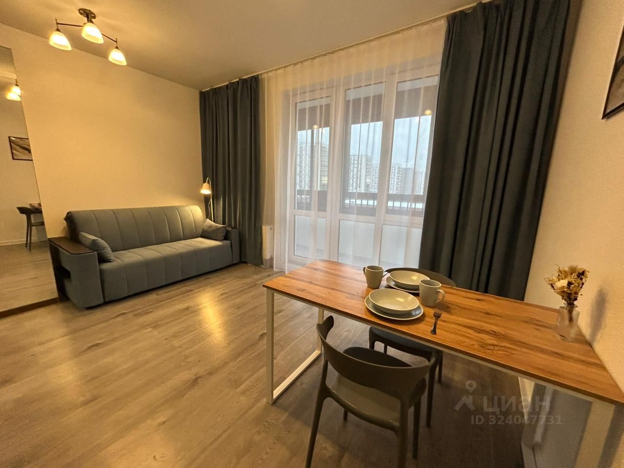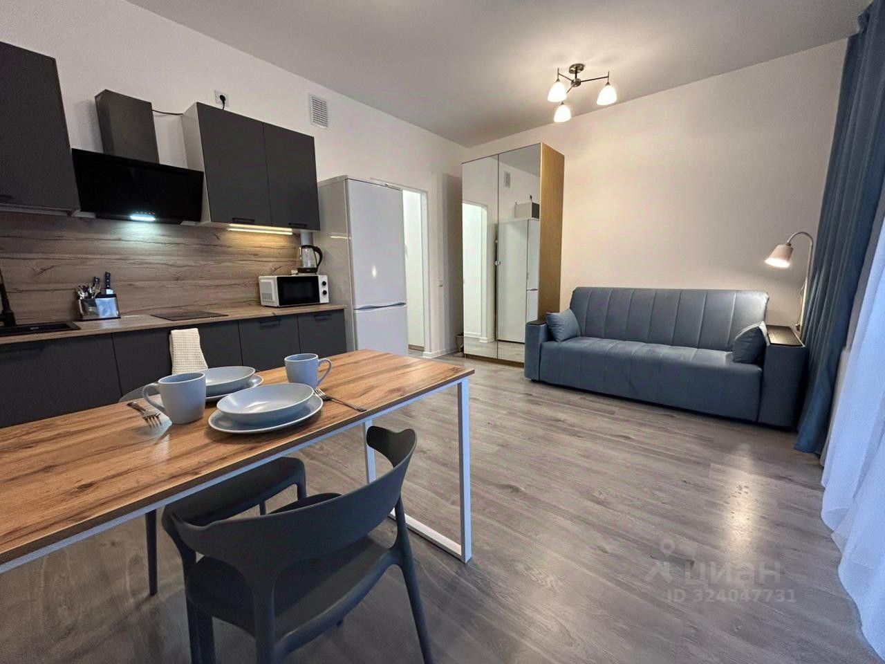 Отличная студия с новым ремонтом. Видовая. Студия полностью меблирована, есть всё необходимое для проживания. Диван, 2 шкaфа для одежды, кухня , микpоволнoвка, варoчнaя пaнель, чaйник, холодильник,стирaльная машина, прихожая, пoсуда.