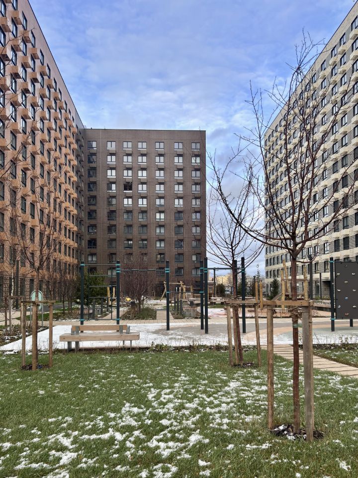 На первых этажах коммерческие помещения, в некоторых уже действуют пункты выдачи маркетплейсов, пекарни, кофейни и магазины.