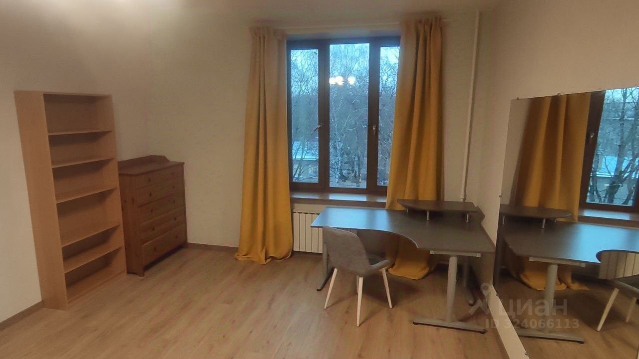 В комнате двухспальная кровать, вместительный шкаф, большой рабочий стол. Дополнительно есть раскладной диван в кухне.