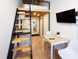 Апартаменты полностью оснащены всеми необходимым для проживания: ЖК-телевизор, высокоскоростной интернет WI-FI, фен, необходимая бытовая химия, чайный набор. В зоне общего пользования: 2 санузла, 3 душевых, прачечная, большая оборудованная кухня, утюг, гладильная доска, сушилка для белья. Уборка раз в 3 дня (по желанию) - бесплатно. Финальная уборка - бесплатно.
