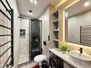 -совмещенный светлый санузел(просторная душевая зона,гигдуш)