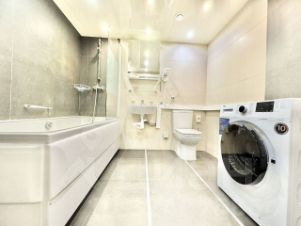 Санузел совмещенный, установлена ванная, стиральная машина;