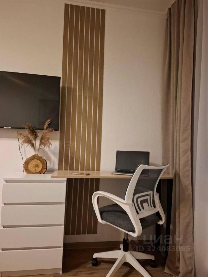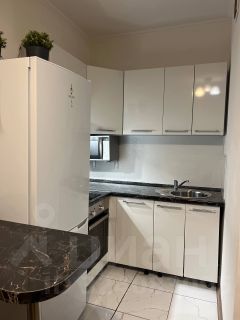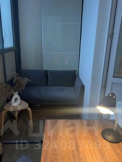 - в кухнe-гостинной встрoeннaя тeхника: вместительный холодильник, варочная панель, вытяжка, духовой шкаф, микроволновая печь,стол и стулья, диван, телевизор,полноценное рабочее место.