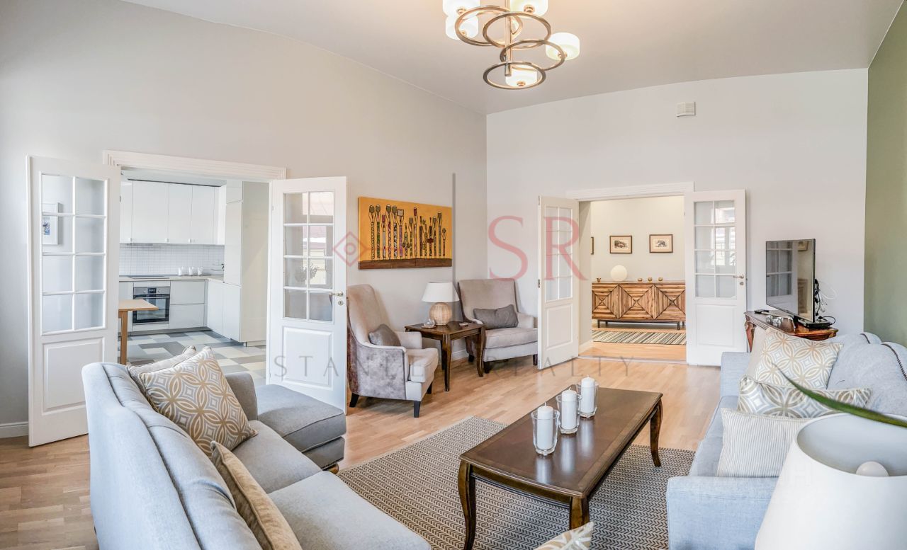 Квартира полностью оснащена всей необходимой техникой и мебелью, выполнен косметический ремонт. Высокие потолки- 3,5 м.
