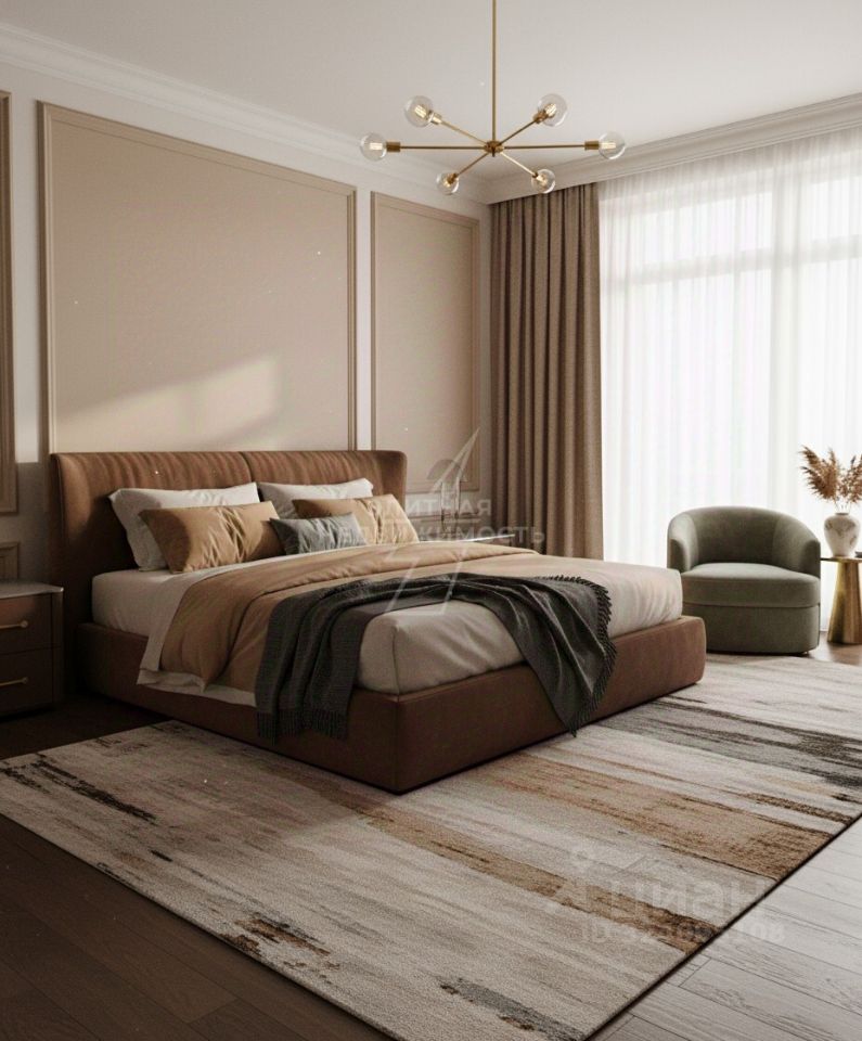 Просторная гостиная с панорамными окнами наполнена естественным светом, подчеркивающим сбалансированные пропорции и изысканные линии интерьера. Функциональная кухня-гостиная оснащена качественной встроенной техникой и организована с учетом повседневного удобства. Уютная спальня с камерной атмосферой обеспечивает приватный отдых, а продуманная организация пространства демонстрирует заботу о качестве жизни.