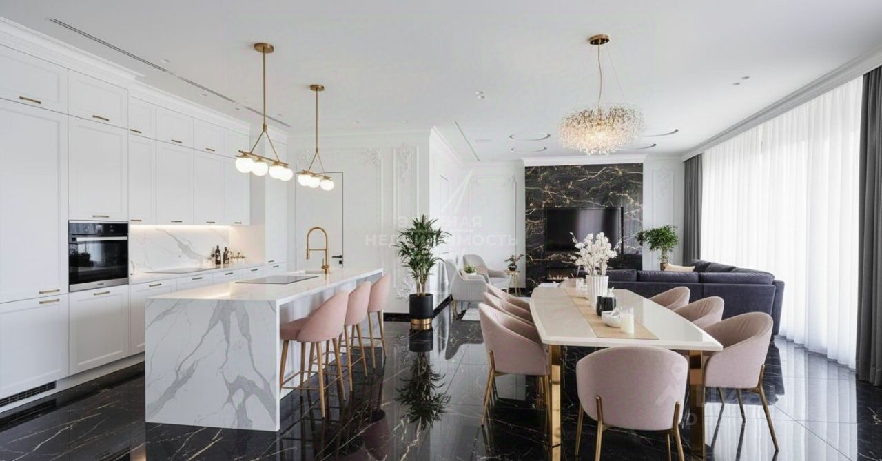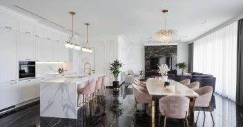 Интерьер выдержан в изысканной гамме, где лаконичность форм сочетается с благородством материалов. Пространство легко подстраивается под ваши желания: будь то уютный вечер у окна с видом на город или светский приём в просторной гостиной. Каждая зона продумана до мелочей — здесь комфортно жить, творить и вдохновляться.