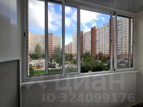В гостиной новый диван (раскладывается в удобное спальное место), корпусная мебель, ЖК телевизор. Выход на застекленную лоджию.