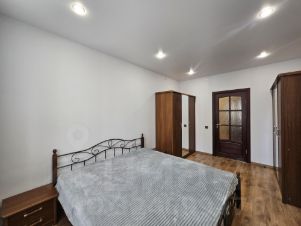 В спальне новая двухспальная кровать, прикроватные тумбы, комод, два вместительных шкафа.