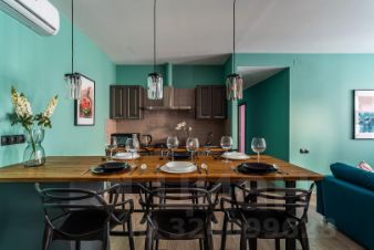 Квартира-оазис Letyourflat Tropicana в самом центре города непременно порадует гостей экзотическим дизайном и продуманностью каждой детали. 90 м2 вмещают в себя 3 спальни, раздельные санузлы и кухню-гостиную, которая позволит комфортно разместиться даже большой компании.