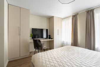 Элегантные дизайнерские апартаменты со свежим ремонтом LetYourFlat "Opera" погрузят вас в атмосферу умиротворения и комфорта благодаря оформлению в пастельных тонах и современному техническому оснащению. Квартира с двумя раздельными спальнями с кроватями Queen size и гостиной с широким диваном (отделяемой дверью-купе от кухонной зоны) разместит компанию до 6 человек.