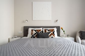 В наших апартаментах LetYourFlat "Status" со свежим ремонтом, двумя отдельными спальнями и просторной гостиной с уютной обеденной зоной вы будете чувствовать себя как дома! Элегантный интерьер в спокойных тонах подарит чувство уюта и умиротворения, а расположение в центре города позволит сэкономить время на дорогу.