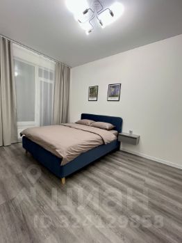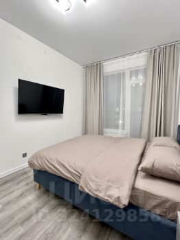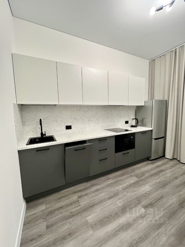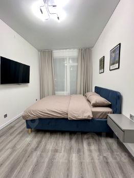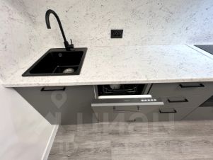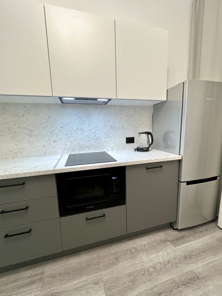 Квартира оборудована мебелью и техникой: на кухне : встроенная кухонная мебель с варочной панелью, встроенный духовой шкаф, вытяжка, холодильник, стол, стулья, микроволновая печь. В комнате: двуспальная кровать, прикроватные тумбочки, шкаф купе. В санузле - ванна, умывальник, стиральная машина.