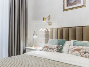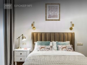 Квартира общей площадью 94 м2, с двумя спальнями и двумя лоджиями, в которой заложена идея комфортного пространства благодаря продуманной планировке: просторная кухня-столовая, гостиная с обеденной зоной, две спальни, гардеробная комната, ванная комната и гостевой санузел с душевой кабиной. Кухонная техника: холодильник Liebherr (Германия), духовой шкаф и варочная панель I ilve (Италия), вытяжка Falmec. Корпусная мебель, гардеробная и кухня произведены из массива натурального дерева на заказ в Италии. Сантехника Villeroy&Boch, Jacob Delafon. Стиральная и сушильная машина Samsung.