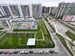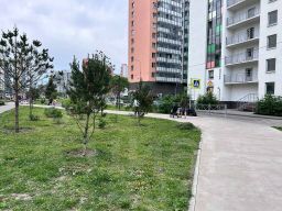 Рядом со домом расположен уютный сквер с лавочками, качелями и небольшими игровыми зонами, что делает район максимально комфортным для отдыха и прогулок.