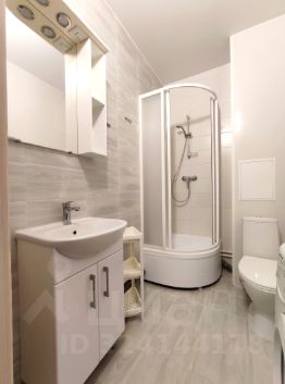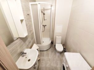 Санузел совмещенный в кафеле, душевая кабина, теплый пол;