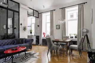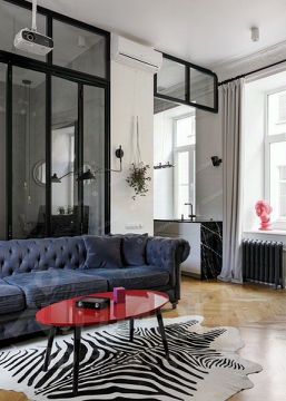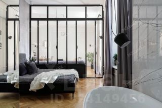 Просторное единое пространство, разделённое элегантной складной перегородкой для легкого зонирования, создаёт идеальный баланс между свободой и функциональностью.