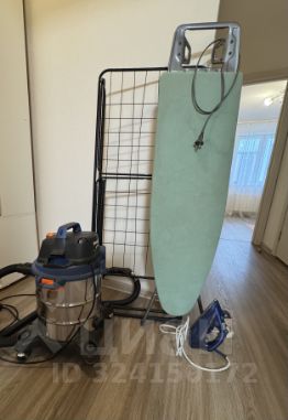 Комната1: письменный стол и стул, кровать односпальная, шкаф для одежды, пылесос, сушка для белья, гладильная доска, утюг.
