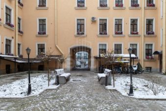 Окна выходят в спокойный, маленький дворик в котором слышно тишину. Это тот вариант, когда старый фонд бережно отреставрировали, сохранили аутентичность и дали ему новый смысл.